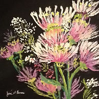 As well as painting flowers, I love to grow them, and so I am very familiar with their shapes and colors. I now work in pastel, watercolor, ink and watercolor combinations. I also do watercolor torn paper collages. My subject matter, in addition to florals includes, landscapes, seascapes, still lives and figures.